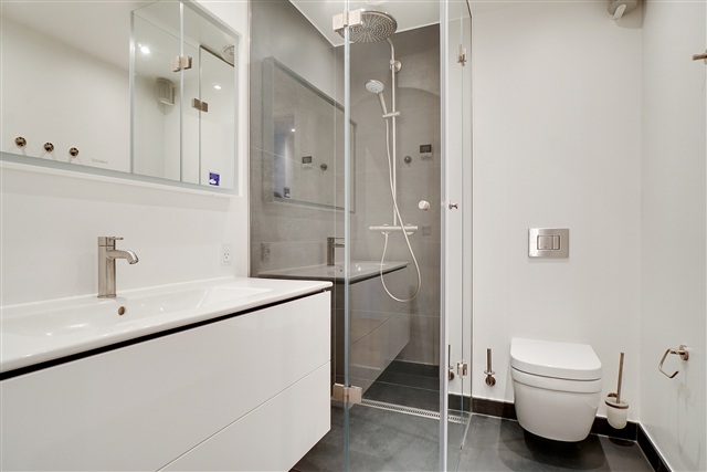 Located on the second floor of a newly constructed building with elevator access, this attractive three-room apartment spans 92 square meters and offers modern living in a well-maintained property. The kitchen features a high-gloss finish and includes a movable island, equipped with comprehensive Miele appliances. Notably, it comes with a dishwasher and a wine cooler designed for both red and white wines.The open-layout kitchen connects seamlessly to the living area, which provides ample space for a dining table and seating arrangement. From here, you can step out onto a pleasant balcony that overlooks a beautiful park, offering a captivating view. The entrance hall leads to a bathroom fitted with a wall-mounted Grohe toilet, a storage cabinet, a mirror from Duravit, and a shower niche featuring a premium Grohe rainshower.