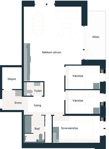 In Bakkerne's 2-4 bedroom apartments in the area, there is room for everyone to thrive, whether you are single, a family with children or a senior. Modern, well-thought-out floor plans ensure that you get the most out of your square meters. The heart of the home is the large kitchen-dining room, from which you step out onto your private balcony or terrace with a view to either the south or west. You will also find good parking options in one of the area's two parking garages. Material and content are indicative.If you want to read the description in its original language that is also possible. Read original description
