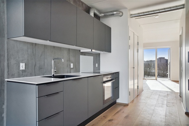 The attention to detail throughout the area is evident. The development was designed to offer rental apartments that stand apart from conventional rental complexes, focusing on creating a pleasant living environment. High standards are set in terms of quality, clearly reflected in the choice of materials. Tenants at Thrige Firkanten can expect a thoughtfully designed home featuring oak flooring, a distinctive kitchen from HTH, and modern wiring that supports ultra-fast and reliable fiber internet connections.Thrige incorporates many authentic, high-quality natural materials such as oak and natural stone, chosen not only for their aesthetic appeal but also for their durability. In most units, reclaimed bricks are used on select walls, contributing to a unique atmosphere. The kitchen is fully equipped with an integrated dishwasher and a combined refrigerator and freezer, alongside a cooktop, hood, and oven. The bathroom includes both a washing machine and a tumble dryer.