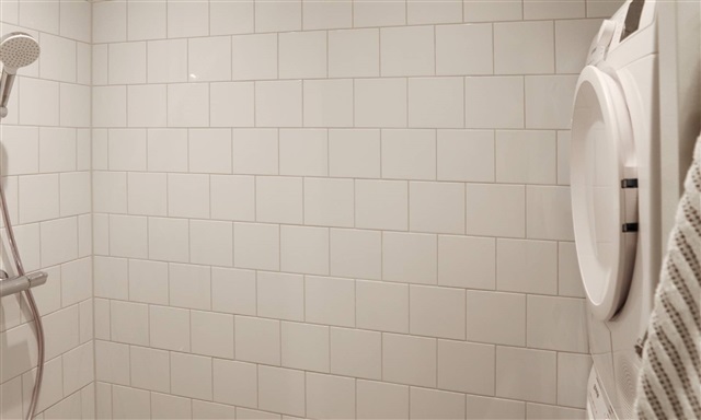 The bathroom is adorned with tasteful tiling and includes a separate shower cubicle. Underfloor heating provides comfort, and essential appliances such as a washing machine and tumble dryer are included.