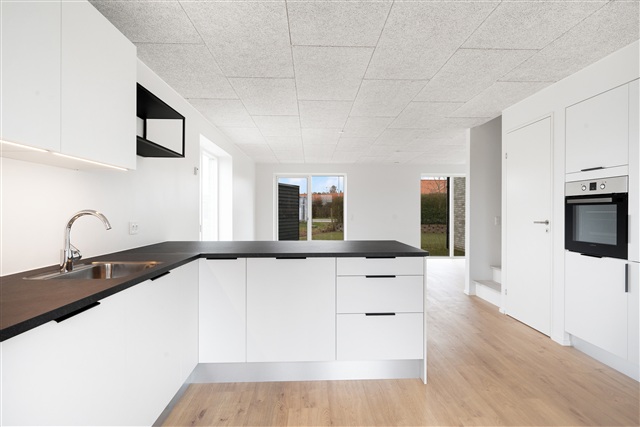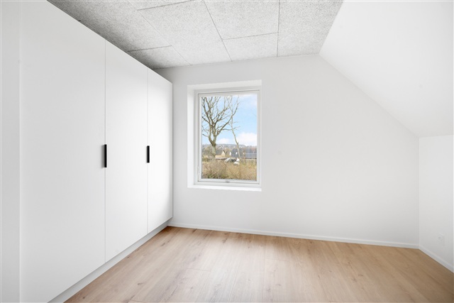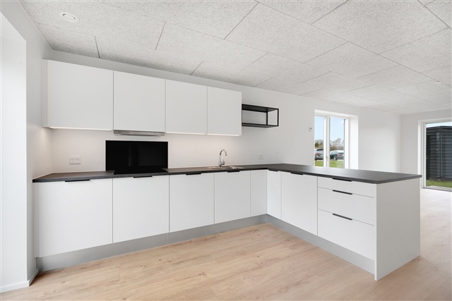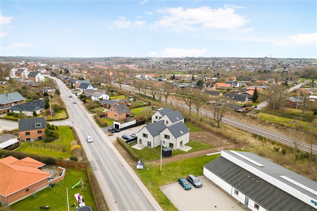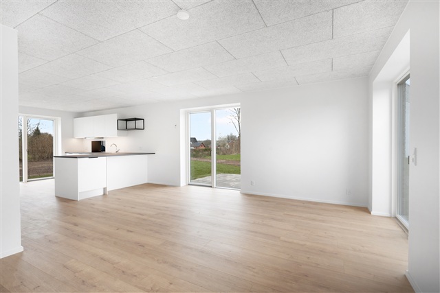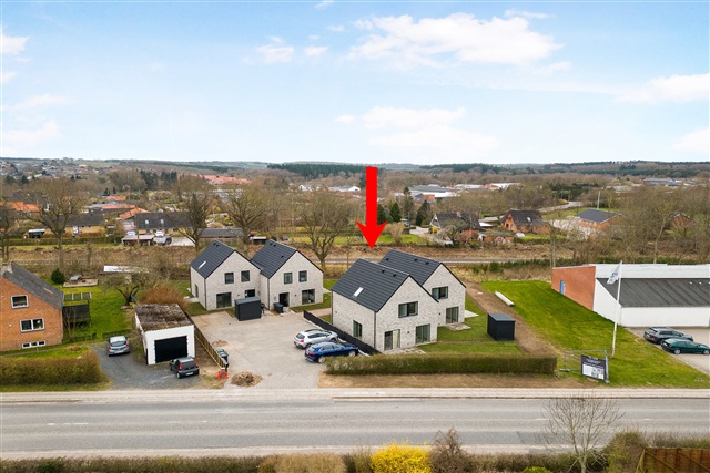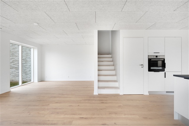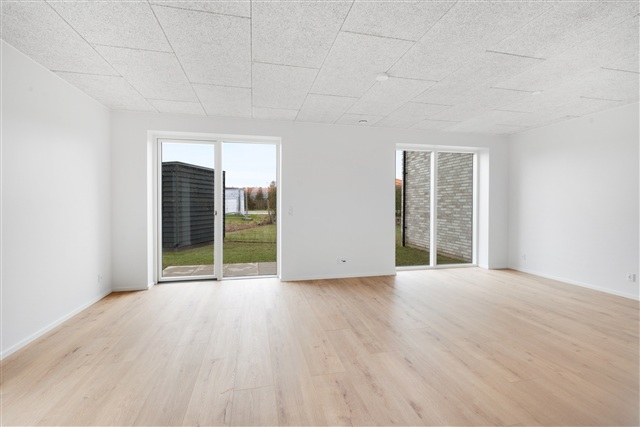 The house is on one and a half levels and has its own garden with two terraces and a shed. In addition, there is a common area and two parking spaces belonging to the house.Kirkevej is within walking distance of schools, daycare, kindergarten, sports hall and shopping facilities. Hadsten is centrally located in Eastern Jutland and you can drive to Aarhus in 25 minutes by car and to Randers in 15 minutes. There are both train and bus connections.