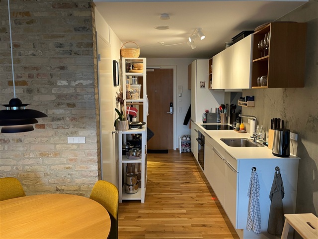 About the AreaIn Aarhus Nord you will find the Area, which consists of 390 quality apartments built with a focus on creating a lovely setting for your everyday life. Here you will find oak floors, walls of raw concrete and charming recycled bricks in some of the apartments. You will get beautiful natural stone in the bathrooms, and the kitchens are white HTH kitchens. There is a dishwasher, washing machine and dryer in all apartments. In addition, there is underfloor heating in all apartments. Education nearbyThe area is located on the corner between Møllevalgs Allé and Katrinebjergvej in northern Aarhus. Here you live close to several educational institutions, such as IT-Byen Katrinebjerg, Aarhus University and the Danish School of Media and Journalism. Aarhus University Hospital and VIA University College Campus Aarhus N are also a few kilometers away. You also have several good shopping options within walking distance of your apartment, including Storcenter Nord very close by. A shorter walk or bike ride takes you to the city center. Lovely outdoor space The area is built as seven point buildings, two of which are 14-story apartment buildings. From the upper floors you get a phenomenal view of beautiful Aarhus with the bay peeking out on the horizon. The lower-located apartments have a view of the large landscaped outdoor space. Here, the emphasis has been on creating a beautiful, green space with, among other things, a fireplace, cozy corners, trees and outdoor fitness. The area was completed in 2020, and it has since formed the framework for both students, couples, singles and new families with children. The area has an underground parking lot, where you can rent a parking space or store your bicycle. Each apartment has a storage room in the basement.If you want to read the description in its original language that is also possible. Read original description