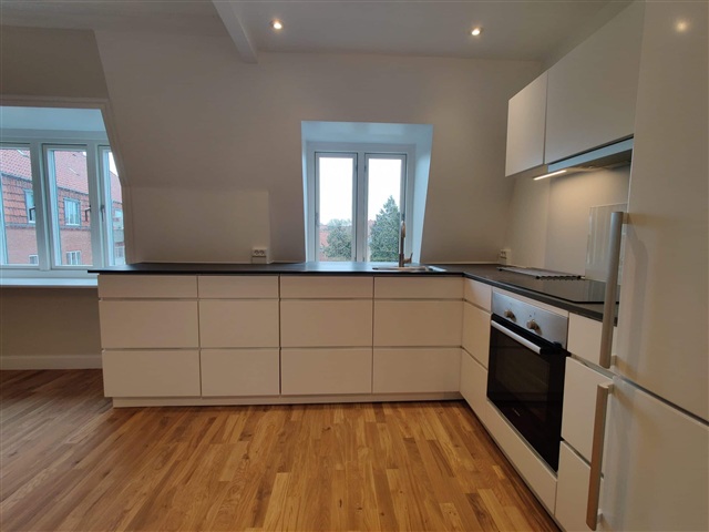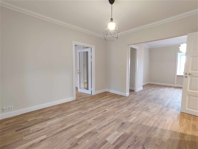 This recently renovated apartment is centrally located in Charlottenlund and features a spacious entrance hall with ample room for outerwear. It includes a bright bathroom equipped with underfloor heating and a washing machine. The new, open-plan kitchen is light-filled and comes with a dishwasher, seamlessly connected to the dining area. The residence also boasts a comfortable living room and two large bedrooms, both furnished with closets. Brand-new floors with underfloor heating have been installed throughout the apartment.Here, you can retreat and enjoy the advantage of being situated close to several green spaces, including Dyrehaven, Charlottenlund Forest, and Bernstorffsparken. For those who enjoy the sea, Charlottenlund Fort, Skovshoved Harbor, and Bellevue are reachable within a few minutes by bike. Public transport options are conveniently available right outside the door, featuring a bus route directly to Copenhagen. Additionally, Ordrup and Charlottenlund S-train stations are within walking distance, offering an easy and convenient route into central Copenhagen. Nearby shopping streets like Ordrupvej and Jægersborg Allé provide excellent shopping opportunities and a vibrant café culture.