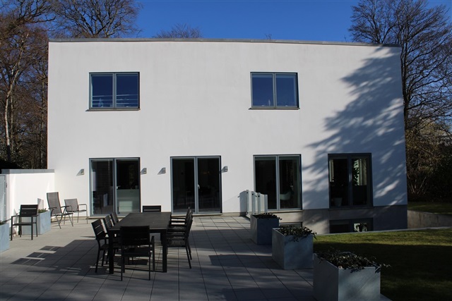 This spacious villa, built in 2017, spans a generous 363 square meters across three functional floors, making it ideal for a large expat family. The ground floor features a beautifully designed kitchen and dining area flooded with natural light from expansive glass doors that open onto a vast terrace equipped with an outdoor kitchen and a fireplace. The kitchen is outfitted with high-end appliances, including three ovens, a built-in coffee machine, a wine cooler, a Quooker tap, and a large American-style refrigerator.Adjacent to the dining space lies the living room, also framed by large windows that showcase the charming garden and surrounding greenery. Nearby, you can enjoy peaceful walks along the trails at Ellemosen, where it's common to see ponies from the local riding school. The ground floor also offers a spacious entrance with abundant closet space, and a bathroom with a shower accessible directly from the dining and kitchen area.