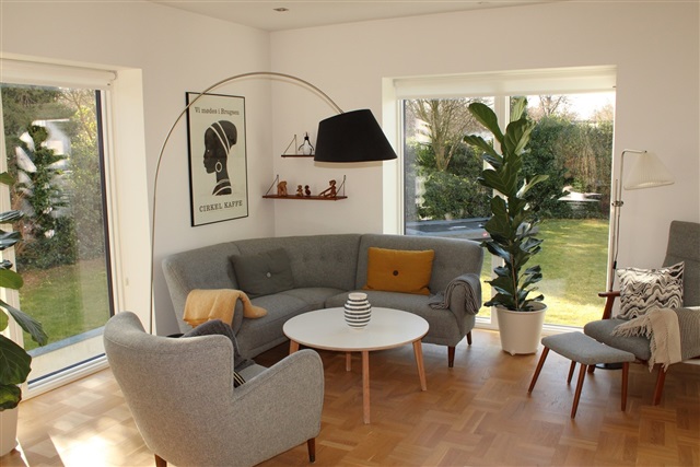 Situated in the desirable Charlottenlund neighborhood, this residence enjoys a prime location with direct access to Ellemosen via a private staircase and lies just a few hundred meters from the scenic Dyrehaven park.