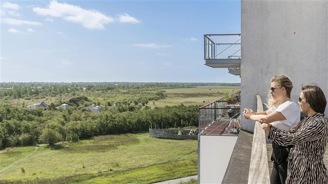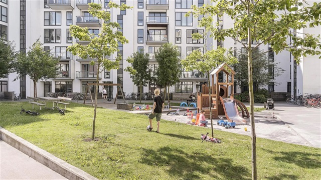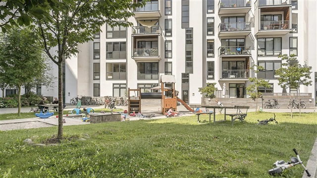 The neighborhood of Ørestad Syd represents Copenhagen's emerging green district, surrounded by nature and water, incorporating a balanced mix of residential, commercial, educational, and cultural facilities. This area is marked by the juxtaposition of contemporary architectural designs and the expansive natural environment of Kalvebod Fælled. Constant development continues to shape the district, and the influx of thousands of residents contributes to the lively, active atmosphere. Despite the proximity to preserved nature immediately at the doorstep, Ørestad Syd remains well connected to central Copenhagen. By bike or metro, it takes approximately eleven minutes to reach Christianshavn and fourteen minutes to Nørreport Station. Within Ørestad Syd itself, all amenities are readily accessible, from extensive natural surroundings to Denmark's largest shopping center, Field's, major cultural venues such as Royal Arena, cafés, sports clubs, schools, kindergartens, and various shopping options right nearby.