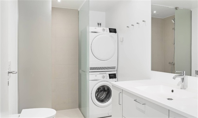 The apartment has been designed specifically to fulfill the demands of families seeking a combination of quality, practicality, and ease in daily living. Upon entering, there is a hallway equipped with storage solutions, leading to bright rooms featuring built-in closets. The bathroom includes a combined washer-dryer unit alongside a shower area. A spacious kitchen and dining area opens directly onto a generously sized balcony, perfect for enjoying the summer months.Located in Søborg, the residential complex known as 'Møbelfabrikken' dates back to 2019 and stands as an intriguing and sought-after development. The site embraces its historical roots with the original main building from 1939 preserved for its unique cultural significance; this structure was initially erected as a furniture manufacturing facility. Behind this heritage building, the company Dades has constructed a contemporary residential property. The estate comprises 184 exceptional homes characterized by sleek interiors and exteriors, featuring elegant brickwork and steel windows, along with bright, minimalist designs that allow families to personalize their living spaces effortlessly. At the heart of this vibrant community lies a lush courtyard designed in New York style, offering areas for children to play, seating with picnic tables to relax around, and pathways winding through verdant greenery. Bicycle parking is available within the courtyard, and underground parking spaces for cars can be rented for an additional fee. Every entrance is fitted with an elevator for convenience. Parking costs amount to 850 DKK per month for the parking garage and 550 DKK monthly for surface parking.