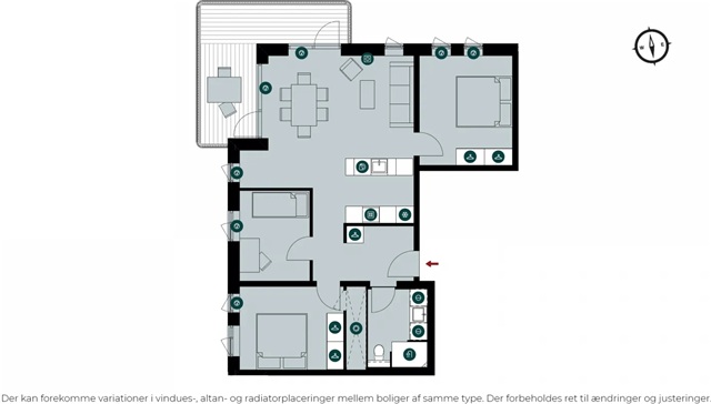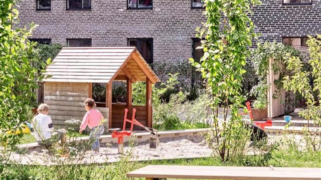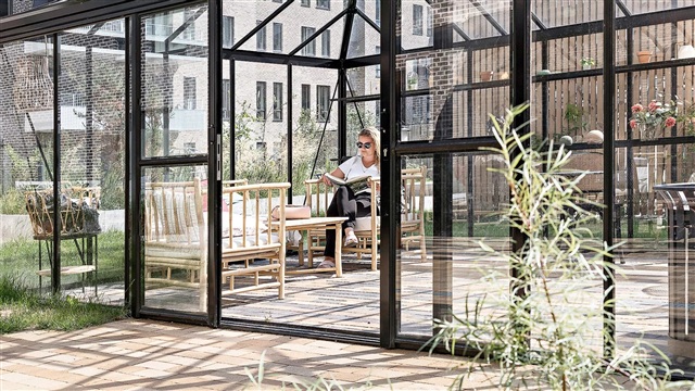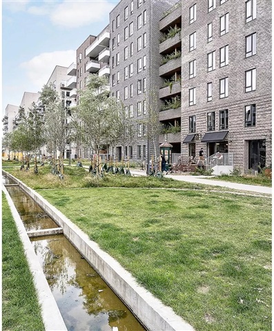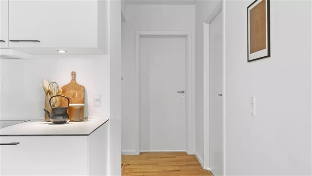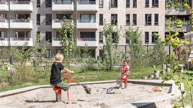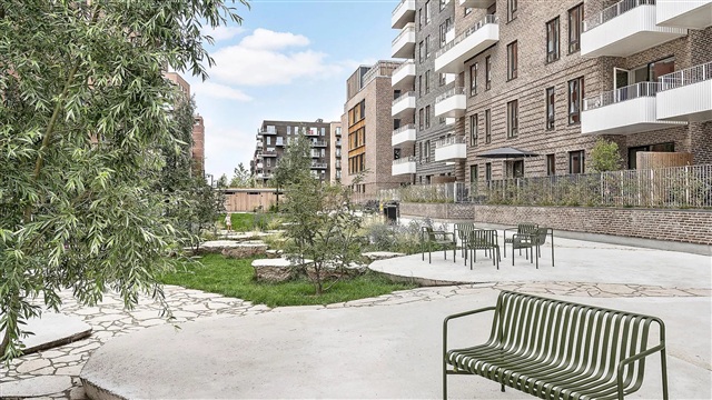 The Bastion building itself is a remarkable architectural project characterized by a strong design identity, created by the award-winning Danielsen Architecture. Upon arrival, you are greeted by the distinctive Winter Gardens that adorn the building's facade and guide you into the lush courtyard. The unique greenery, inspired by the nearby Kalvebod Fælled, is integrated into both the courtyard and the balconies, helping to shield against wind while forming a serene, green sanctuary. The southwest corner of Bastionen is intentionally designed lower than the rest of the building's corners to maximize sunlight penetration into the courtyard and to offer extensive views of the surrounding natural areas known as Skovrummet and Fælleden. This lowered section also ensures that apartments are flooded with daylight. The courtyard's rich and diverse vegetation creates relaxing niches as well as natural play areas featuring tall climbing trees, gentle hills, and meadow grass perfect for hide-and-seek. Additionally, the courtyard includes a greenhouse, a basketball court, and a covered bicycle parking space. The building is equipped with an elevator, a video intercom system, and residents have the option to rent a parking space in the basement.