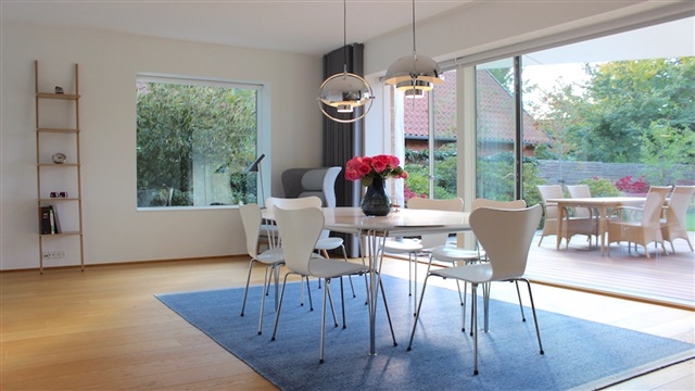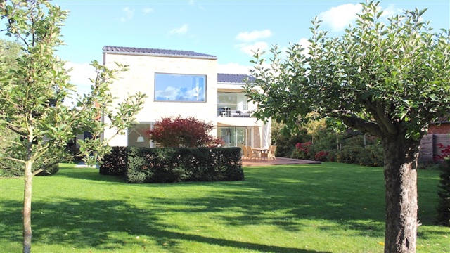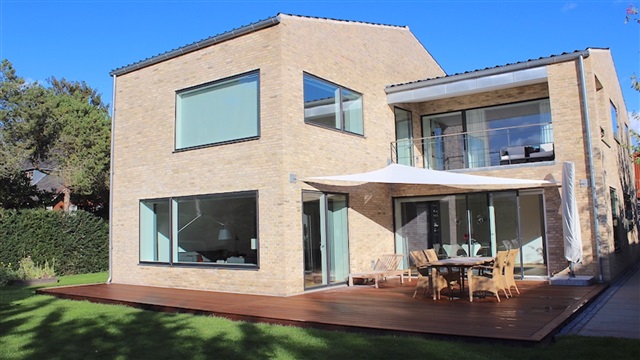 At the quiet end of a street adjacent to Bernstorffsparken, this newly constructed villa is situated. Upon entering, the hallway offers a striking view upward to the first floor via the staircase. The entrance area also provides access to a guest bathroom equipped with a shower stall, as well as a door leading to a spacious garage that includes a utility room. The ground level combines a dining area and lounge space in an open-plan layout, both of which open directly onto a pleasant west-facing terrace and garden. Connected openly to the dining room is a bright, modern kitchen finished in white. Upstairs, the first floor houses a generously sized, light-filled bathroom featuring both a shower and a bathtub. The master bedroom includes built-in wardrobes, large windows overlooking the garden, and access to a balcony. Additionally, there are two more bedrooms alongside a bright lounge or office area that also opens onto the west-facing balcony. The property benefits from a well-maintained and charming garden. Bernstorffsvænget is located in a beautiful and highly desirable neighborhood close to Bernstorffsparken, with easy access to Dyrehaven and nearby train stations. Rygaard International School is just a five-minute drive away.