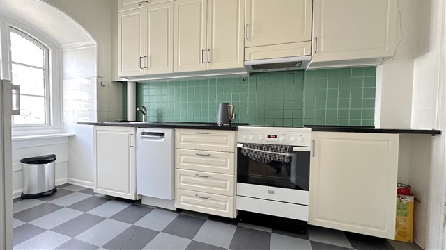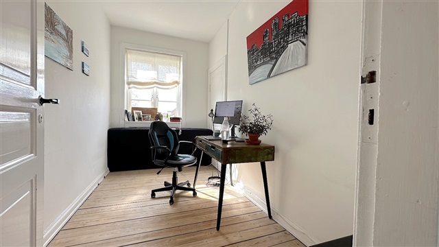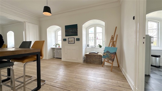 Central to Lyngby's commercial life, this charming four-room apartment is located at the top of the property. The apartment consists of entrance/distribution corridor. Two living rooms ensuite facing the street, and in extension is the kitchen. A large bedroom with French balcony facing the courtyard and with direct access to a bathroom with shower and combi washer/dryer. As well as another bedroom / office facing the courtyard. The property is located near all the best Lyngby can offer in terms of good shops, restaurants and cafes. Short walking distance, five minutes, to S-train.