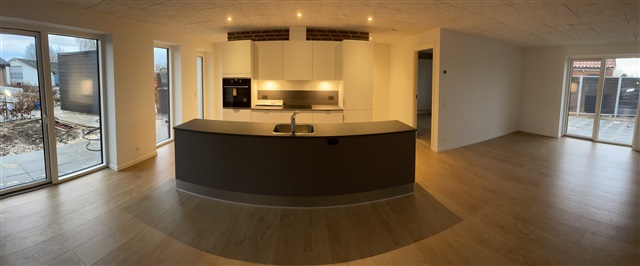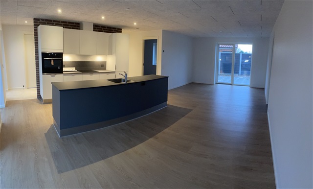 New exclusive 4 bedroom single-storey townhouse, right in the center of Vester Hassing at the end of a dead end road, better price can't be found.50 meters to shopping and bus connections, 15 min. drive from Aalborg city center
