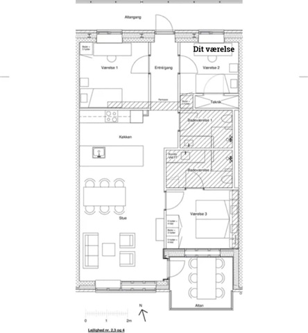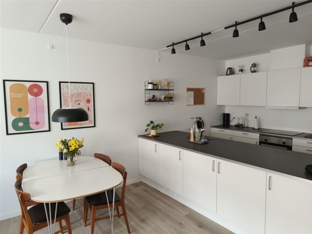 Marie and I are currently looking to welcome a third person to join our small shared household.We live in a modern four-room apartment located on the 2nd floor (with elevator access) at Frederikssundsvej 184 in Brønshøj. The apartment spans 110 square meters and features a spacious, contemporary kitchen combined with a living area, a private balcony, two bathrooms, as well as a washing and drying machine, dishwasher, fiber internet, and an individual ventilation system. The building was completed in November 2021, making this a fairly new residence. Included with the apartment are indoor bicycle storage, a storage room, and access to the building's 466 square meter rooftop terrace, which is perfect for relaxing with a grill and cold drinks in the sun. Utterslev Mose, a scenic natural area ideal for walks and nature outings, is conveniently situated nearby.