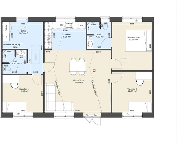 As a resident of the area, you can look forward to energy-efficient homes with brick facades, windows and doors with three-layer energy glass, green heating with air-to-water heat pumps, thermostatically controlled underfloor heating in all rooms, maintenance-free tool sheds built with recycled plastic planks, and electric charging stations in all parking areas. All gardens have a hedge facing the neighbor and their own shed with nice space for storing garden tools and a level double terrace door with direct access from the living room. The kitchen contains an oven, induction, fridge/freezer, dishwasher and extractor hood all from AEG and beautiful fixtures in the kitchen and bathroom from Grohe. In the bathroom and kitchen in the townhouses of 90 and 110 m2 there are 60x60 tiles. In the bedrooms and in the living room the floor is Wallmann longboard laminate flooring in Oak Dimension.If you want to read the description in its original language that is also possible. Read original description