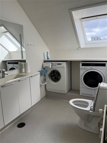 Located right in the heart of Viborg's bustling main pedestrian street, this spacious penthouse offers a thoughtfully arranged living environment. The apartment comprises an entrance hall, a large living room featuring an electric fireplace and direct access to a rooftop terrace, a dining area, and a sizable kitchen equipped with a full range of appliances, including a dishwasher. There is one bedroom, two additional rooms, and a bathroom fitted with both a washing machine and a tumble dryer. Additionally, the property includes a cozy attic room that leads to a dedicated storage space.New windows will be installed throughout the apartment during the upcoming spring season. For an additional monthly fee of 400 DKK, residents have the option to rent a parking space conveniently located near the building. It should be noted that the stated utility cost covers both water and heating expenses on a prepaid basis.