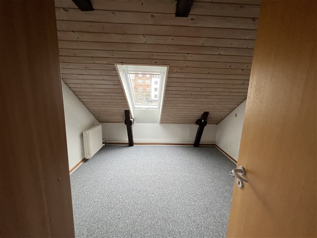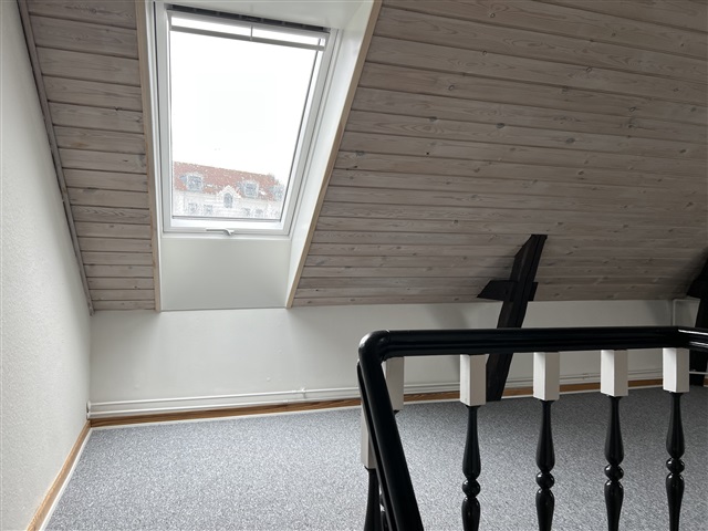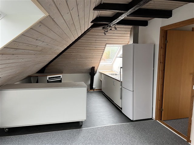 Cozy attic apartment in Silkeborg city center with exposed beams. Kitchen/family room - living room - bedroom - toilet/bathroom. New skylights - freshly painted.Fridge/freezer