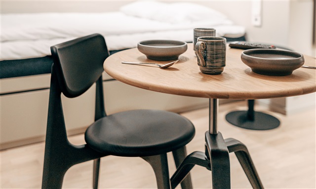 There are only 16 apartments of this particular design available. This uniquely crafted two-room rental features numerous practical elements and boasts several lovely balconies that wrap around the residence, offering stunning panoramic views. The impressive interior includes a spacious, open-plan kitchen and living area equipped with a TV and a charming dining space enhanced by an extendable leaf, allowing for additional guests. Comfort is ensured with a cozy sofa, a sleek kitchen, and a well-thought-out layout complete with all necessary major appliances. The bedroom is furnished with a 160x200 cm bed flanked by two tall cabinets on either side. The bathroom offers underfloor heating, light-colored tiles, and a separate shower enclosure. This is a home that truly needs to be seen to be appreciated.