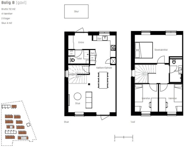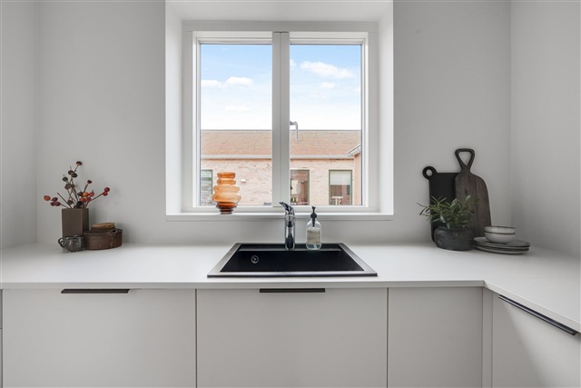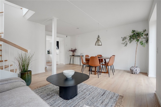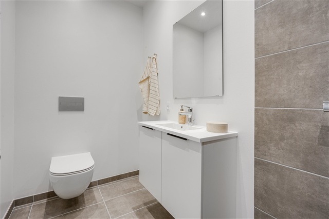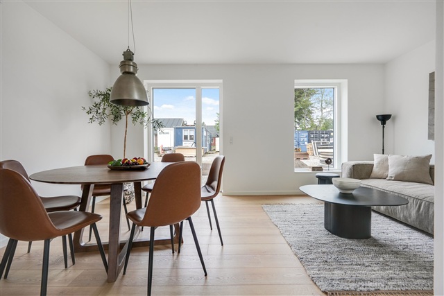 These townhouses are situated in a location that uniquely combines proximity to the city with the tranquility of stunning natural surroundings. Just three kilometers away lies the vibrant center of Nyborg, offering a rich selection of shopping opportunities, dining establishments, and cultural attractions. For those who appreciate nature, living here means being enveloped by both forest and beach environments. Mere steps from the front door, the picturesque coastline and expansive views of the Great Belt invite outdoor enjoyment.Designed to harmonize with their natural environment, the residences feature a modern Scandinavian aesthetic, characterized by bright, airy materials. Crisp white surfaces, carefully chosen tiles, and refined wood flooring provide a graceful foundation for each room. The floors consist of oak planks with a matte finish mounted on a sound-dampening underlay, ensuring both beauty and comfort. The layouts maximize the use of space without any wasted square meters. Each home includes an open kitchen and living area that serves as a central gathering point, opening onto a private, sunlit outdoor space. The facades are crafted from gently textured bricks in warm yellow and green hues, reminiscent of forest edges in autumn and perfectly echoing the natural setting. Complementing these authentic, eco-friendly exterior materials are lush green sedum roofs that blend seamlessly into the environment, forming a vibrant rooftop tapestry.