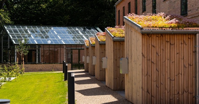 Residents benefit from access to a spacious communal building, ideal for celebrating special occasions with friends and family when home space is insufficient. This 120-square-meter orangery combines glass and brick to allow natural light to pour in freely from all directions. The areas between the homes are linked by a thoughtfully designed network of paths that meander among the housing blocks, the shared building, and the surrounding green corridor leading to forest and beach. The goal is to establish an accessible, secure pathway system connecting the residences to their environment. Landscaping between the dwellings and the community house fosters green spaces that encourage play and social interaction. Additionally, there is a well-organized parking area that facilitates convenient parking close to each home while preserving a peaceful neighborhood atmosphere where children can safely roam free, uninterrupted by through traffic.