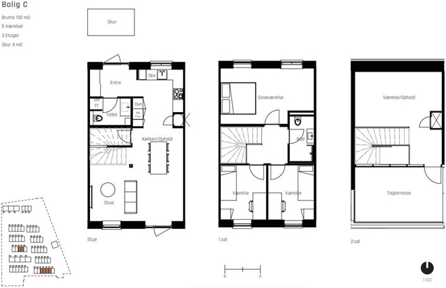 Townhouses with a superb location The area has the great advantage of being both close to the city and surrounded by beautiful nature. It is only three kilometers to the heart of Nyborg with a wealth of shopping opportunities, restaurants and cultural experiences. For nature lovers, living surrounded by both beach and forest has obvious advantages. A few hundred meters from the front door, the beautiful coastline and the view of the Great Belt await. Homes at one with nature All homes are modernly furnished with bright and light materials in a Scandinavian style, where the white surfaces, well-chosen tiles and elegant wooden floors create the framework for the individual rooms. The floors are beautiful oak planks with a matte finish and noise-absorbing soundproofing. At the same time, the square meters are optimally utilized, and you will experience modern floor plans without any wasted space. In all homes, the kitchen-family room is a natural gathering place, from which there is access to a private and sunny outdoor area. The facades' soft-ironed bricks with a play of yellow and greenish nuances evoke memories of forest edges in autumn colors, which are so true to the scenic surroundings. As a fitting counterpart to the facades' authentic and sustainable materials, the houses are equipped with beautiful, green sedum roofs that blend naturally into the area and create a lush carpet on top of the area. The apartments are equipped with ventilation systems that provide heat recovery, and there is underfloor heating in all rooms with individual wireless room thermostats that ensure a well-temperatured and energy-friendly indoor climate. Each home also has built-in humidity sensors that automatically regulate extraction according to need and load. The entrance has sliding doors without interior decoration, and closets have been established in the rooms. However, there is no closet in the bedroom or living room on the 2nd floor. Common facilitiesThe residents of the area have access to a large, beautiful community house, where there is plenty of space to celebrate anniversaries with friends and family, if the space at home becomes too tight. The community house is built as a 120 square meter orangery in glass and brick, where light can flow in unhindered from all four corners of the world. The area between the homes will have a well-developed path system that meanders between the individual apartment blocks, the community house and the green belt towards the forest and the beach. The mission is to have an easily accessible and safe path system that connects the homes with the surroundings. The area between the homes and the community house is planted with the aim of creating a green setting for play and community. The common areas also include a well-designed parking area, which makes it easy for residents with their own car to park close to the home - while also having an idyllic neighborhood where children can safely move around freely without through traffic.If you want to read the description in its original language that is also possible. Read original description