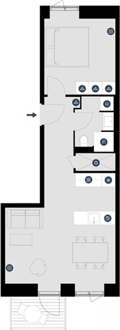 This spacious two-room apartment welcomes you through a compact entrance area designed to accommodate outerwear. Inside, you'll find a bedroom equipped with built-in closet space and a bathroom featuring a timeless minimalist aesthetic, with tiled floors extending into the shower zone, underfloor heating, and a combined washer-dryer unit. Throughout the rest of the apartment, elegant oak flooring and underfloor heating create a warm atmosphere. The open-plan kitchen and living area is furnished with a modern white Svane kitchen, complete with all essential appliances. This space is designed to comfortably fit both dining and seating arrangements and opens directly onto a balcony, ideal for enjoying your morning coffee.The concept behind these apartments embraces Simple Living, focusing on providing tranquility and the freedom to concentrate on life's essential aspects. It encourages owning only what is necessary for everyday living, allowing for an efficient and well-thought-out home environment. Prospective tenants may apply for pet permission, which must be approved by the landlord for all units.