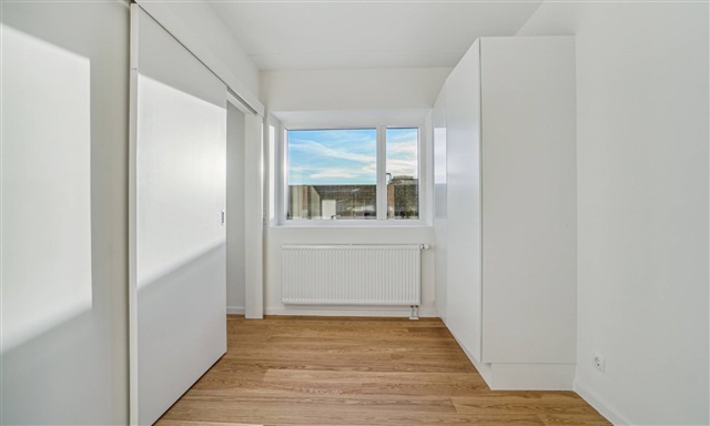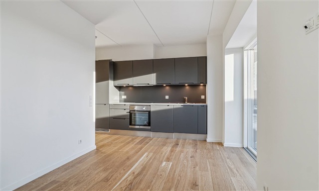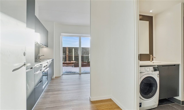 This inviting two-room apartment offers a harmonious blend of contemporary convenience and a prime location in the heart of Herlev. Inside, you will find a sleek kitchen finished in lava gray with integrated appliances, accompanied by a well-appointed bathroom featuring a shower area and laundry facilities. Built-in closets provide ample storage space. The elegant plank flooring contributes to a warm and sophisticated ambiance. Situated high above the city rooftops, the dwelling benefits from abundant natural light, fresh air, and pleasing views.The building, known as Taghaverne, consists of 135 high-quality homes situated atop Herlev Bycenter. Residents have exclusive access to a communal rooftop garden, designed with cozy seating areas perfect for relaxation and social gatherings. Despite being centrally located, the property offers a tranquil environment above the city's hustle and bustle. Parking is conveniently available for both cars and bicycles, with options to rent a parking space and access to electric vehicle charging stations.