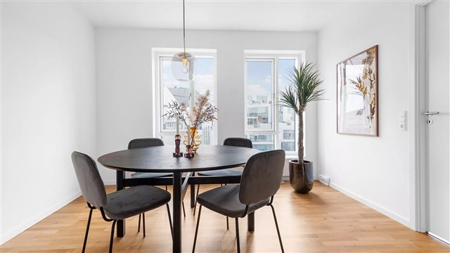 Situated in Ørestad Syd, Copenhagen's emerging green district, the neighborhood lies at the intersection of urban life and natural surroundings. This area is characterized by innovative and modern architecture designed by both well-established Danish and international architects. Residents benefit from immediate access to Kalvebod Fælled, a unique natural landscape that provides ample opportunities for activities like running, cycling, horseback riding, kite flying, rollerblading, or peaceful walks. The district also features a variety of restaurants along with a vibrant urban lifestyle and cultural scene. Living here places you within walking distance of shopping at Field's, major cultural and sporting events at Royal Arena, numerous sports clubs, and exceptional outdoor recreational spaces. Bastionen is furthermore conveniently located near daycare centers, schools, high schools, and higher education institutions. With the metro station just around the corner, it takes merely 14 minutes to reach Kongens Nytorv.