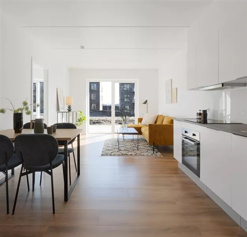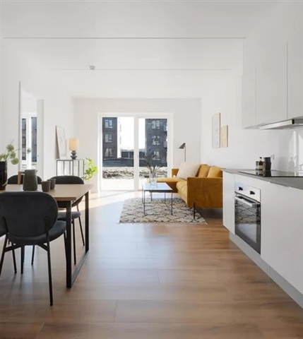 This spacious three-room apartment in Horsens features a centrally located kitchen-dining area that seamlessly flows into the living room. The rental property includes a large master bedroom, a smaller additional room, a modern bathroom, and a private balcony or terrace. Additionally, there is a dedicated storage shed associated with the apartment.The open-plan kitchen and living space offer a generous and welcoming environment where cooking, dining, and relaxing come together effortlessly. The kitchen is equipped with contemporary, practical fixtures designed to make meal preparation enjoyable. This combined area serves as a natural hub for everyday living as well as social gatherings.