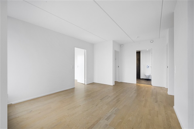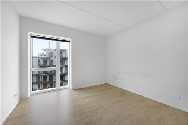 The home is bright and inviting with beautiful wooden floors and underfloor heating, white walls and exclusive kitchen and bathroom, wardrobe with sliding doors from floor to ceiling - here, every detail is taken care of. The apartment consists of an entrance hall, kitchen, living room, family room, bathroom, 1 bedroom and 2 rooms. In addition, the apartment has a fantastic light from the large windows so you can enjoy your living rooms in plenty of daylight.