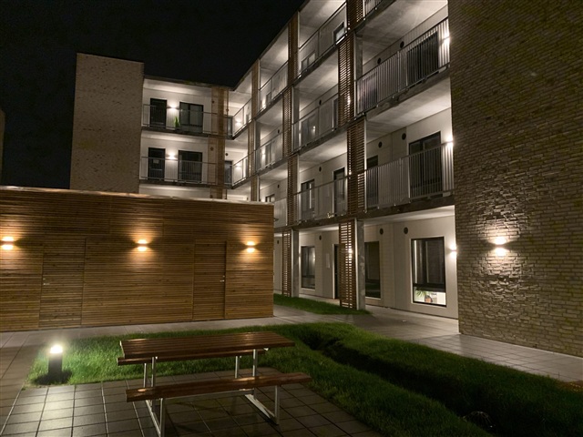 Situated in the verdant surroundings of Egelunden in Aarhus, this contemporary apartment is available for rent, offering convenient proximity to Aarhus city center. The residence features high-quality materials throughout and is equipped with modern appliances. The kitchen stands out with its elegant grey cabinetry, complementing a layout designed for optimal use, well-suited for either individuals or couples. Comfort is enhanced by underfloor heating spanning the entire apartment and a Genvex ventilation system.The rental unit comprises a kitchen area spacious enough for dining, a bedroom, and a stylish bathroom complete with a combined washer and dryer. The kitchen is fitted with built-in oven, glass-ceramic cooktop, refrigerator-freezer, and an exhaust hood. Constructed in 2020, the building provides access to a shared courtyard. Residents benefit from bicycle parking, a private storage room within a locked shed, as well as complimentary parking spaces associated with the property upon registering the vehicle's license plate.