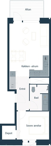 Located in Kirkebjerg Søpark, the residential complex I Lunden offers rental apartments featuring between two and four rooms, ranging in size from 60 to 108 square meters. The layouts are designed with flexibility and modernity in mind, ensuring optimal use of the available space, whether you are living alone, part of a family with children, or a senior. The focal point of each unit is a spacious kitchen-living area that encourages socializing and relaxation with family or friends. From the living room, residents can access their private balconies, terraces, or gardens, which face either south or west.Within I Lunden's courtyard, an open and airy atmosphere prevails with raised wooden walkways winding through clusters of trees. Tall meadow grasses, small shrubs, and trees create inviting sheltered spots ideal for both communal gatherings with neighbors and quiet moments of reflection. Residents benefit from the close proximity to Kirkebjerg Søpark's two parking garages, making it easy to transport groceries and belongings from car to home. These garages also provide electric vehicle charging stations for those with e-cars. For cyclists, there is ample bike parking conveniently near the apartments. Please note that the floor plan is for guidance only, and the images shown may not exactly represent the specific dwelling.
