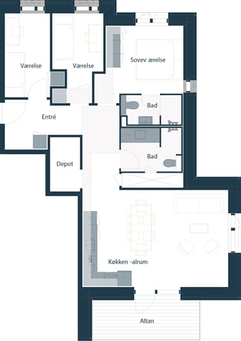 Welcome to In Lunden in Kirkebjerg Søpark you will find rental apartments with 2-4 rooms spread over 60-108 square meters. Flexible and modern floor plans ensure that you get the most out of your square meters, so whether you are single, a family with children or a senior, there is room for everyone to thrive. The heart of the home is the large kitchen-dining room with space for cozying up and spending time with friends and family, and from the living room there is access to your own private balcony, terrace or garden with a view to either the south or west. In Lunden's courtyard you will find light-filled trees and a path of slightly raised walkways. Tall meadow grasses, smaller bushes and trees create cozy, sheltered living nooks, where there is space for both spending time with family and neighbors, and space for contemplation on your own. When you live in Lunden, you live close to Kirkebjerg Søpark's two parking garages, so you can easily get the day's shopping and luggage from the car to the home. And in the parking garage you also have the opportunity to charge your electric car. Do you use pedal power instead? Of course, there is also plenty of bicycle parking close to your home. Please note that the floor plan is indicative and the pictures of the home do not necessarily correspond to the rental in question.If you want to read the description in its original language that is also possible. Read original description