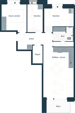 Welcome to In Lunden in Kirkebjerg Søpark you will find rental apartments with 2-4 rooms spread over 60-108 square meters. Flexible and modern floor plans ensure that you get the most out of your square meters, so whether you are single, a family with children or a senior, there is room for everyone to thrive. The heart of the home is the large kitchen-dining room with space for cozying up and spending time with friends and family, and from the living room there is access to your own private balcony, terrace or garden with a view to either the south or west. In Lunden's courtyard you will find light-filled trees and a path of slightly raised walkways. Tall meadow grasses, smaller bushes and trees create cozy, sheltered living nooks, where there is space for both spending time with family and neighbors, and space for contemplation on your own. When you live in Lunden, you live close to Kirkebjerg Søpark's two parking garages, so you can easily get the day's shopping and luggage from the car to the home. And in the parking garage you also have the opportunity to charge your electric car. Do you use pedal power instead? Of course, there is also plenty of bicycle parking close to your home. Please note that the floor plan is indicative and the pictures of the home do not necessarily correspond to the rental in question.If you want to read the description in its original language that is also possible. Read original description