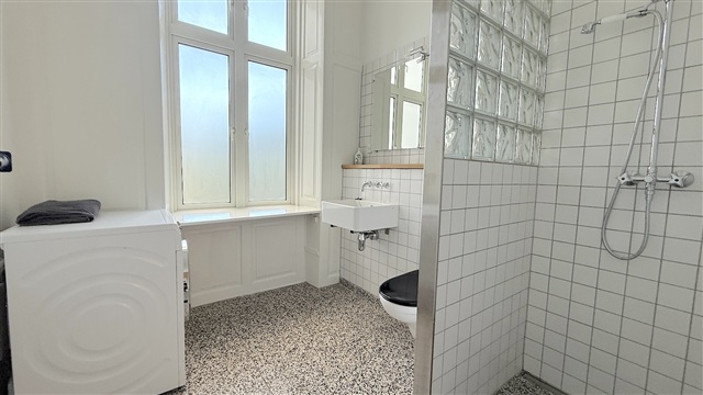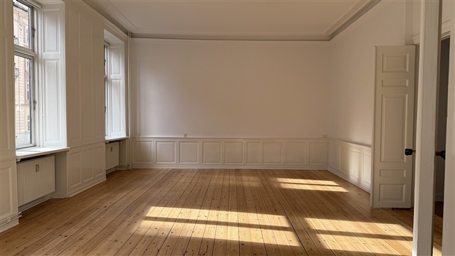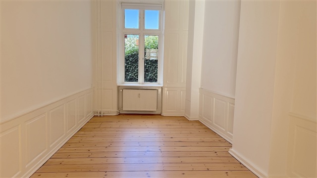 The apartment consists of an entrance/distribution hall, from which there is access to a large shower room with washing machine and tumble dryer. Cosy kitchen with French balcony and space for a small dining area. Bedroom facing the courtyard. Towards Vesterbrogade there are two living rooms, one of which can be used as a bedroom. The property is located in one of Copenhagen's most popular neighbourhoods in terms of cafes, restaurants and cosy food stores. Short distance to Metro (Frederiksberg Alle station). The pictures are not from the specific apartment, but an apartment with a similar floorplan. NOTE: THE APARTMENT IS NOT OFFERED FOR SHARING