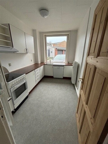 Located in the heart of Varde, this ground-floor apartment features its own private entrance. Upon entering, there is a hallway spacious enough to accommodate a wardrobe. The generously sized dining room offers access to a small terrace, allowing for outdoor enjoyment. The living room benefits from ample natural light throughout the day. The large bedroom measures approximately 22 square meters and provides a comfortable sleeping area. The kitchen is modern and well-equipped, including a refrigerator-freezer, stove, and extractor fan. The bathroom contains a shower. The floors are wooden, with underfloor heating installed in the bedroom. This property is suitable for sharing. Additionally, there is an option to purchase a garage if one is available.