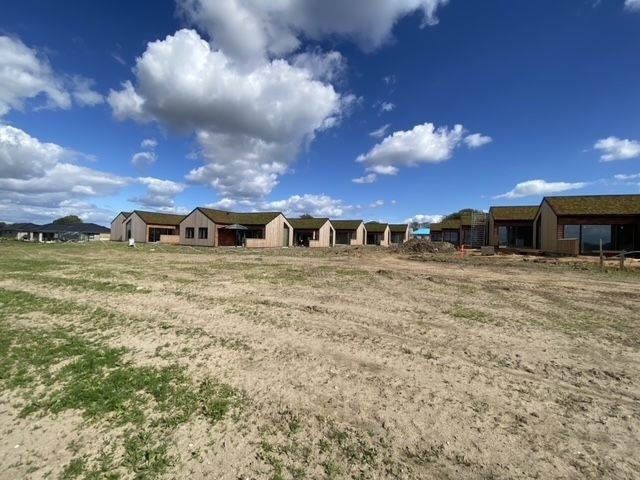 A private storage shed accompanies the property for additional space, and electric vehicle charging stations are available on-site. Surrounded by meadows, cultivated wild areas, and forest edges, Skovhusene presents an ideal living environment for those who appreciate nature’s proximity, welcoming both seniors and families with children.