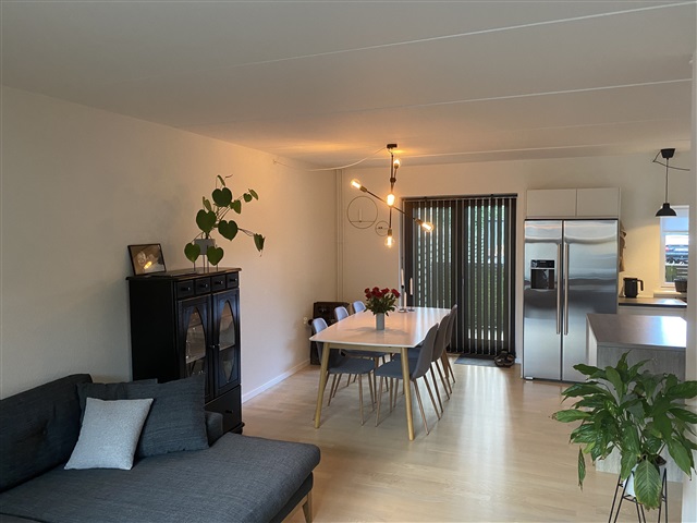 I am renting out my lovely apartment in the heart of Herning, just a stone's throw from the pedestrian zone. The apartment is 73 m2 and has a bathroom, entrance hall, bedroom, large kitchen/dining room and large terrace. The apartment was completely renovated in 2015 with a new kitchen, American fridge, integrated dishwasher & oven, new flooring and new large integrated cupboards with sliding doors in both the entrance hall and bedroom. The apartment includes access to a private basement room, party room and the possibility of parking in a secluded courtyard. The apartment is especially suitable for seniors, couples or singles who want to live a stone's throw from the pedestrian zone in a beautiful modernised apartment with its own terrace of 16 m2.The apartment is equipped with modern facilities, including a dishwasher, American fridge and washing machine, which makes everyday life easier. The possibility of parking in a secured courtyard adds extra convenience to your lifestyle.