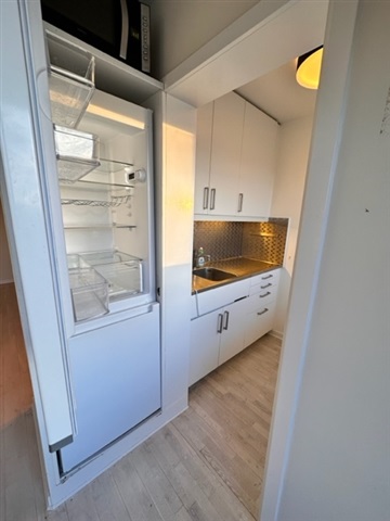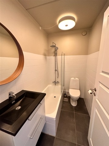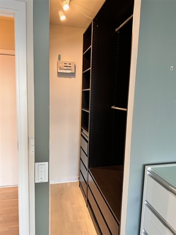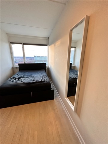The apartment is well furnished. There is an entrance hall with shoe cabinet. Newer kitchen with fridge/freezer, stove and small dishwasher. Large well-functioning bathroom with bathtub. Large, bright living room with access to balcony with fabulous views from the 16th floor. Lovely bedroom with its own walk-in closet.