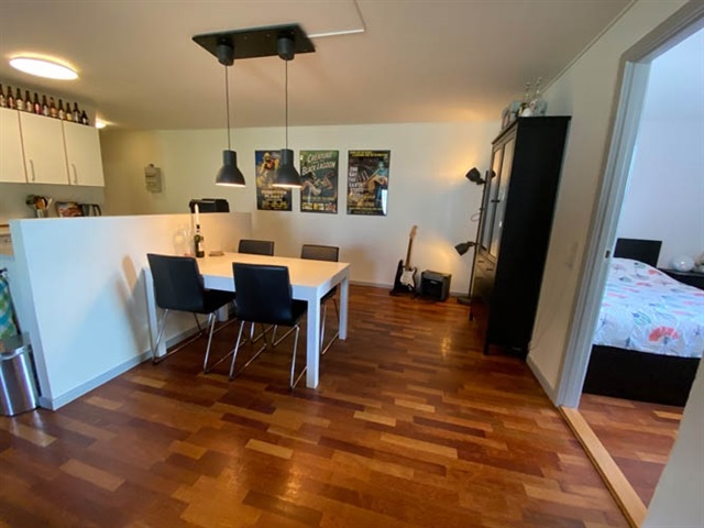 This attractive three-room apartment features a stylish kitchen and bathroom, complemented by beautiful wooden flooring throughout. Upon entering, a central hallway leads into a spacious living room that includes the kitchen area and provides access to a terrace. The apartment is equipped with a full range of built-in appliances, such as a dishwasher and washing machine. The bathroom is bright, adorned with light-colored tiles, and there are two well-sized bedrooms. Situated on the ground floor, the residence is located in a quiet residential neighborhood in the heart of the city, with LEGO nearby. Free parking is conveniently available right next to the building.