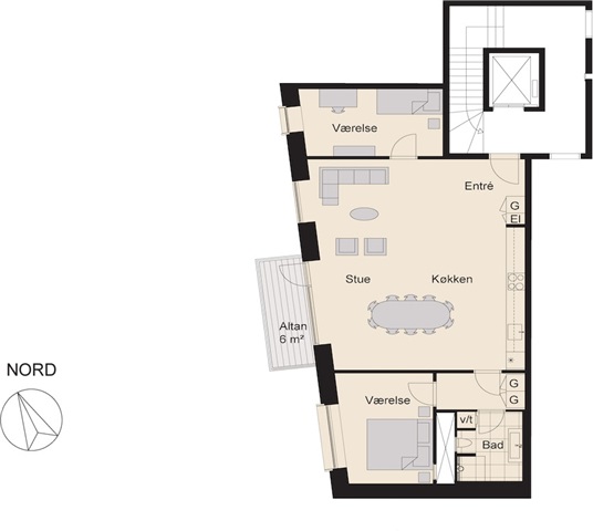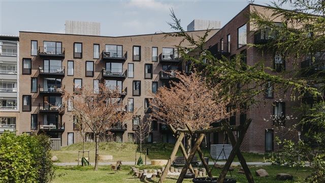 This apartment is situated on the third floor and features an entrance area that leads directly into the spacious living room. Positioned centrally within the unit is access to a west-facing balcony. The kitchen is designed in an open layout, flowing seamlessly from the living room. At opposite ends of the apartment, you will find two bedrooms; one is equipped with built-in wardrobes, while the other provides direct access to the balcony. The bathroom includes a shower and is fitted with a combined washer and dryer.Residents benefit from access to a pleasant courtyard, as well as shared rooftop terraces offering beautiful views across the city. The building is serviced by an elevator and includes parking and bicycle storage in the basement, with the option to acquire a private parking space. A private storage room is also part of the property. Within the building, there is a fitness center and a café. The location is conveniently close to Frederiksberg's best cafes, restaurants, and shopping opportunities, with several metro stations situated within a short walking distance.