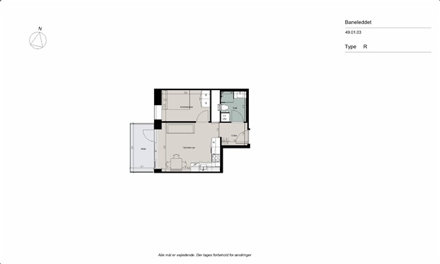 This finely designed and optimized apartment welcomes you through a separate entrance area that provides ample space for hanging coats. From this entryway, you step into a bright kitchen-dining room featuring a fully equipped, modern white kitchen outfitted with a refrigerator/freezer, oven, stovetop, extractor hood, and dishwasher, accompanied by generous storage options. The living room is efficiently laid out to accommodate both a seating area and a dining section with ease. It opens onto a spacious west-facing balcony where one can enjoy sunlight, fresh air, and views over the nearby residential neighborhood of detached houses. Access to a large bedroom from the living area allows for placement of a sizable bed. The entrance hall also leads to the bathroom, designed with a timeless aesthetic and generous space, offering a separate shower enclosure as well as both a washing machine and dryer.Throughout the apartment, underfloor heating is installed and can be individually controlled in each room.