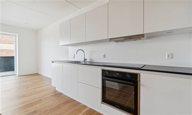 This charming and efficiently designed apartment welcomes you with an entrance hall that leads directly into a bright kitchen-living area. The kitchen features a clean white design, fully equipped with a fridge-freezer, oven, stovetop, extractor fan, dishwasher, and ample storage space. The living room is thoughtfully laid out, offering practical options to set up both a seating and dining section. From the living room, you can access a spacious west-facing balcony that invites you to enjoy sunlight and fresh air while overlooking the nearby residential villa neighborhood. The large bedroom, accessible from the living room, provides ample room for a sizable bed. The entrance hall also connects to a bathroom designed in a timeless and elegant style, which is both spacious and fitted with a separate shower enclosure, as well as a washer and dryer.Underfloor heating is installed throughout the entire apartment and can be individually adjusted in each room for personalized comfort.