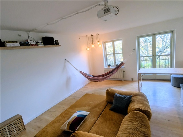 Shopping options and Flintholm station with metro and S-train are within a 5-minute bike ride. There's free parking for one car on the property.