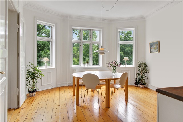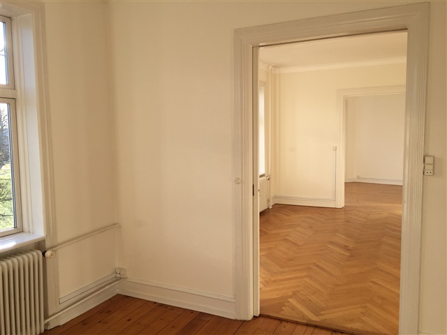 The apartment, located on the second floor, appears nicely bright and ready to move into. It has high ceilings, partly stuccoed, nice floors and a westfacing balcony. From the living rooms and kitchen-family room, there is a beautiful and unobstructed view of Ordrup park.The apartment offers an entrance hall, large bedroom with wardrobes, a west-facing balcony with a view of the residential area.