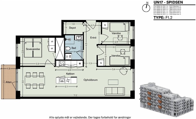 Spidsen, the building in which this apartment is located, was envisioned by architects from Sweco and occupies a prime spot by the lake and the picturesque Kalvebod Fælled. This location is considered one of the finest in Ørestad. On the rooftop, two expansive communal terraces offer ample room for relaxation, play, and dining, all while presenting stunning views across the verdant landscape.