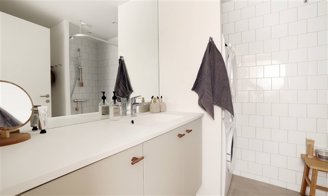 This bright and well-designed four-room apartment offers a thoughtfully optimized layout that includes an open kitchen and living area spacious enough to accommodate both a dining section and a comfortable lounge. The three generous bedrooms provide versatile usage options, whether you require a children's room, a home office, or a guest bedroom.From the kitchen and living space, there is direct access to the apartment's balcony, which presents stunning views over the rich natural greenery and wildlife of Fælleden. The home features large windows that invite ample daylight and the beautiful surrounding nature inside, complemented by elegant oak parquet floors and underfloor heating throughout.