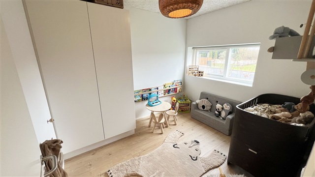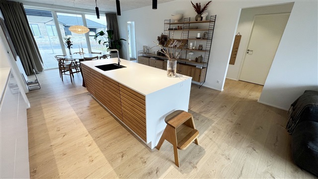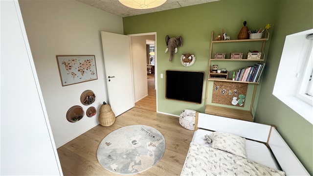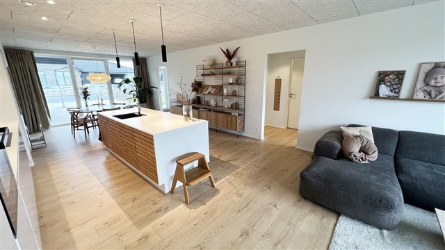 Situated in a picturesque neighborhood, the property is conveniently close to the well-regarded Vonsild School, a kindergarten, a riding school, shopping facilities, the highway network, and the vibrant city life of Kolding. Additionally, residents have the option to install their own electric vehicle charging station.