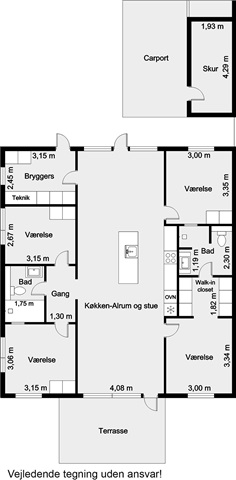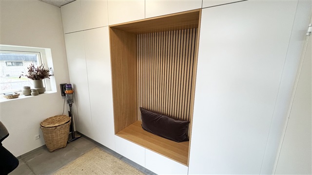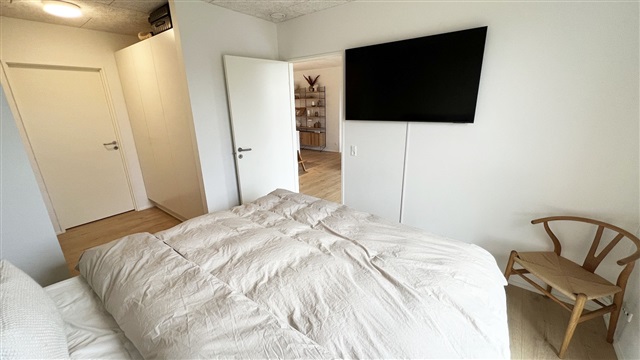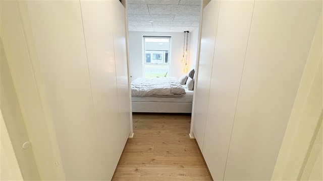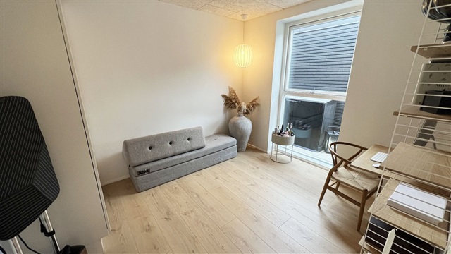 This meticulously crafted quality home, constructed by LASSE LARSEN HUSE A/S, features a spacious terrace, a storage shed, and a carport. Inside, the residence offers an entrance area with utility space and a niche, four bedrooms, two bathrooms, a combined kitchen and dining area equipped with a kitchen island, and a living room. The house is fitted with a ventilation system and underfloor heating, and includes furnishings from HTH. Appliances provided comprise a washing machine, dryer, pyrolysis oven, induction cooktop, as well as an integrated fridge-freezer and dishwasher.The rent does not cover utilities; tenants pay for electricity, water, heating, and antenna/fiber services directly to the respective providers. Pets are allowed with approval, provided they do not disturb other residents.