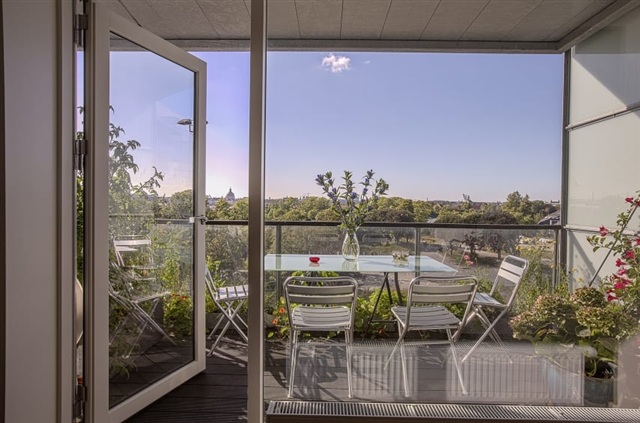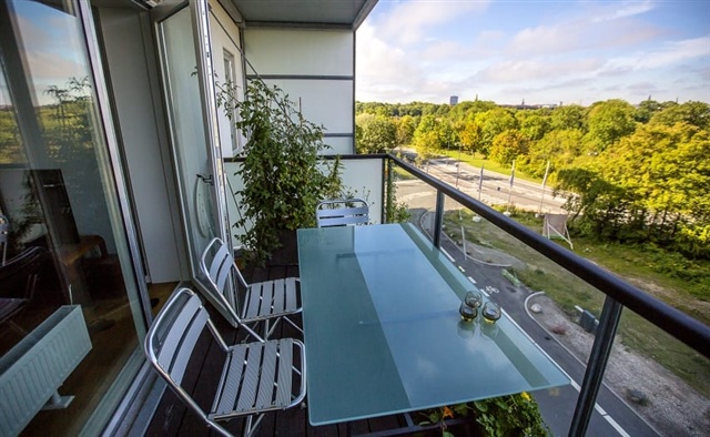 * Large balcony with a view of all of Copenhagen and evening sun.