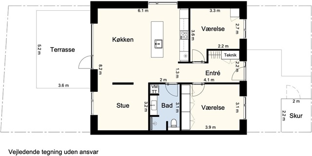 The bathroom is thoughtfully arranged with a laundry column and features light-colored materials, while the remainder of the home follows functional lines that provide flexible use and practical room layouts. The surrounding area of Klarup Søpark is designed to promote an active and secure lifestyle for its residents. Green spaces weave between the homes, unveiling a setting complete with playgrounds, walking paths, and leisure zones. The community house further enhances the neighborhood, offering a gathering spot with a kitchen, lounge area, large terrace, guest rooms, and a convenient workshop suited for everything from bike repairs to small projects. This environment encourages communal interaction while still allowing you to retreat to your own private sanctuary.