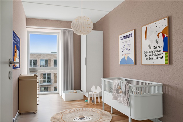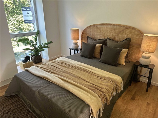 This home exudes a light and welcoming atmosphere and is positioned on the second floor with a layout designed to easily accommodate personal preferences. Residents benefit from free parking spaces available for all at Dalum Papirfabrik. Please note, the floor plan is indicative and may be subject to minor changes, while the images shown are from furnished model apartments and do not depict the actual rental unit.